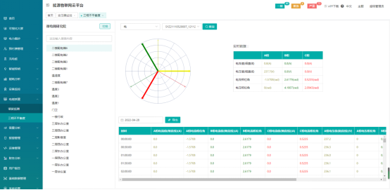 電能質量監測,包括三項不平衡度、諧波、功率因數,以矢量圖的形式展示三相不平衡度。三項不平衡或功率因數過低時產生報警,觸發APP、手機短信、郵件、釘釘、語音等多種方式提醒。